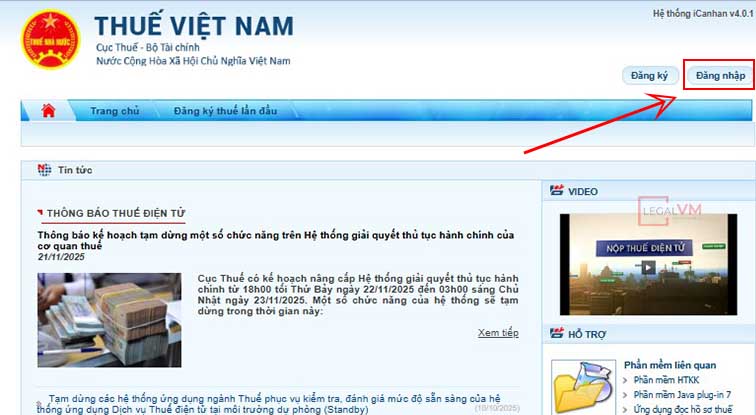– Nhấp vào Cổng thông tin Thuế điện tử theo địa chỉ sau: https://thuedientu.gdt.gov.vn , chọn ” Đăng nhập ” ở góc phía trên bên phải màn hình.