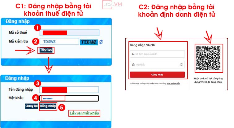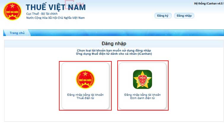 Truy cập vào địa chỉ Cổng dịch vụ công quốc giá tại https://dichvucong.gdt.gov.vn , ấn ” Đăng nhập “. Chọn 1 trong 2 hình thức đăng nhập sau: