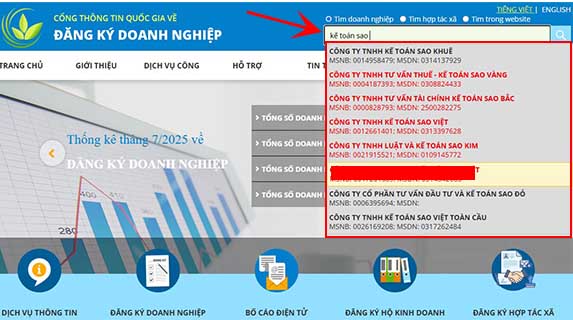 | Nhập quá nhiều ký tự hoặc cụm từ dài | Khi nhập tên đầy đủ kèm loại hình (“Công ty TNHH”, “Công ty Cổ phần”…), kết quả có thể bị sai lệch hoặc không tìm thấy. | Chỉ nhập từ khóa chính trong tên doanh nghiệp (ví dụ: “Hoa Sen” thay vì “Công ty Cổ phần Tập đoàn Hoa Sen”). |