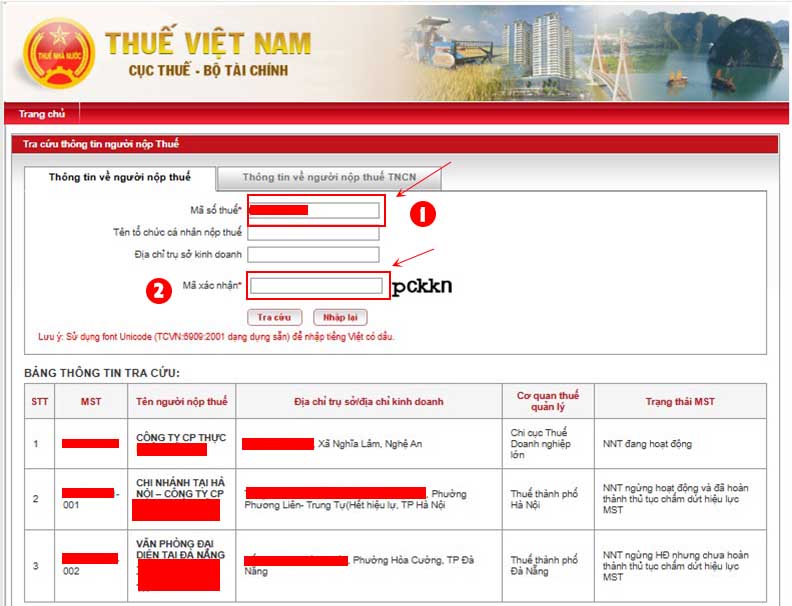 – Ưu tiên sử dụng mã số doanh nghiệp / mã số thuế để có kết quả chính xác nhất. |